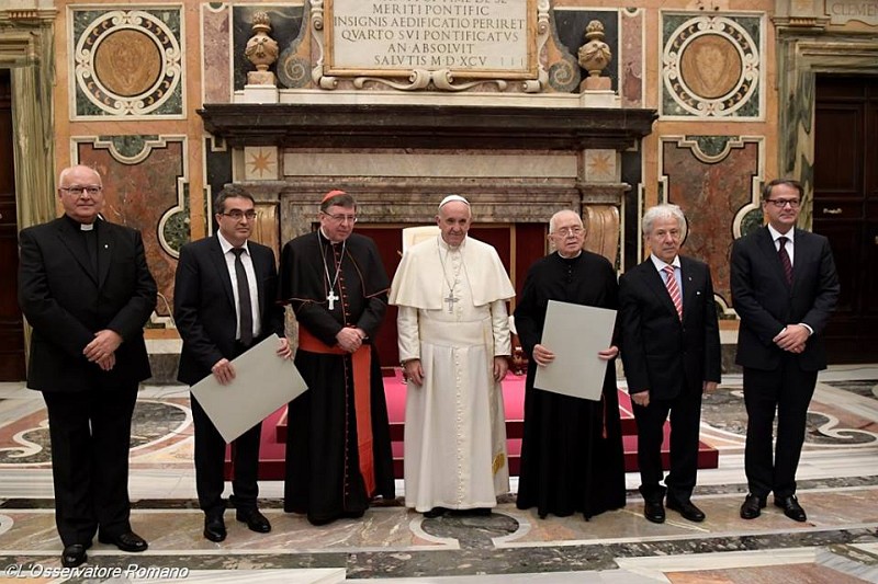 27.11.2016, Vatican (Catholica) - Papa Francisc a înmânat ieri Premiul Ratzinger 2016 teologilor Inos Biffi, catolic, italian, și Ioannis Kourempeles, ortodox, grec. Ceremonia de premiere s-a desfășurat sâmbătă, 26 noiembrie a.c., în Sala Clementină din Palatul Apostolic, la încheierea simpozionului „Escatologie: analize și perspective”. Cei doi teologi au fost aleși să primească premiul Ratzinger de comitetul științific al Fundației Joseph Ratzinger – Benedict al XVI-lea, pentru „activitatea de cercetare științifică cu caracter teologic”. Propunerea numelor câștigătorilor a fost prezentată Papei Francisc de comitetul științific al Fundației, alcătuit din Cardinalii Angelo Amato, președinte, Kurt Koch și Gianfranco Ravasi, alături de Arhiepiscopul Luis Francisc Ladaria.