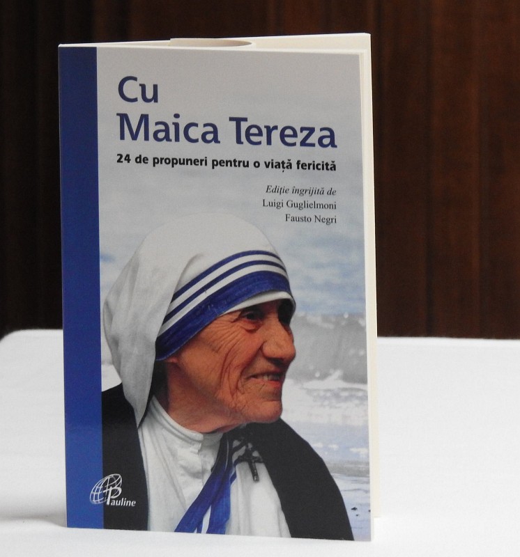 13.12.2016, București (Catholica) - Editura Pauline anunță apariția cărții „Cu Maica Tereza. 24 de propuneri pentru o viață fericită”, lucrare îngrijită de Luigi Guglielmoni și Fausto Negri. Cartea are 128 de pagini și pentru 10 lei poate fi achiziționată online de pe situl Libraria.Pauline.ro. Cităm prezentarea cărții:
