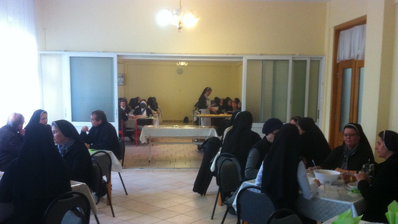 După meditație a fost expus Preasfântul Sacrament în biserica mănăstirii, iar grădina surorilor a fost foarte primitoare pentru o plimbare în rugăciune, pentru că soarele zâmbea pe cer. În sfârșit, la orele 17.00 a urmat Sfânta Liturghie, în cinstea Fericitului Anton Durcovici, concelebrată de călugării preoți care au participat la ziua de reculegere. Celebrantul principal a fost pr. Marius Taloș, iar cuvântul de primire și salutul final au fost rostite de sr. Patricia Rediu. Sperăm să putem trăi un climat de familiaritate și de împărtășire atât de frumoasă în toate întâlnirile programate pentru acest an liturgic, următoarea fiind Ziua mondială pentru Viața Consacrată, în sărbătoarea Întâmpinării Domnului pe 2 februarie 2017. (corespondență semnată de pr. Stefano Conotter OCD)