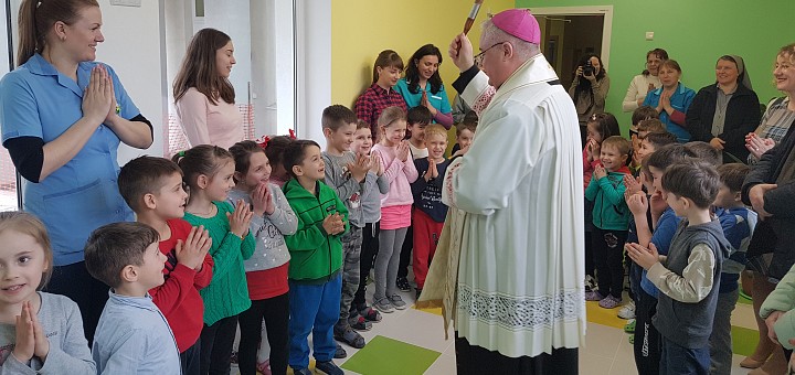 Chiar dacă inaugurarea oficială a noului edificiu și sfințirea lui va avea loc în luna mai de către Excelența Sa Miguel Maury Buendía, Nunțiu Apostolic pentru România și Republica Moldova, Preasfințitul a ținut să binecuvânteze personalul și sălile de clasă tocmai pentru ca prezența lui Dumnezeu să îi însoțească pe toți cei care vor beneficia de educația oferită în grădiniță, precum și pe cei care se dedică acestei forme de apostolat.