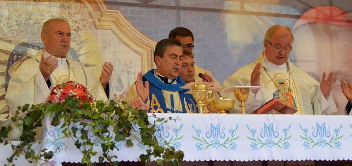 15.08.2017, Cacica (Catholica) - Sute de tineri și ministranți au mers în pelerinaj pe jos luni, 14 august 2017, spre Sanctuarul marian din Cacica, pe o distanță de aproximativ 5 km, recitând Sfântul Rozariu și intonând cântece mariane. Mons. Miguel Maury Buendía, Nunțiu Apostolic în România și Republica Moldova, PS Petru Gherghel și PS Aurel Percă au condus procesiunea.