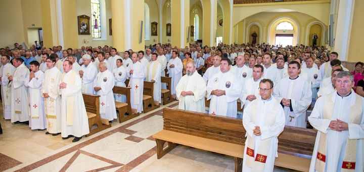 21.08.2017, Iași (Catholica) - În cadrul Liturghiei prezidate de PS Petru Gherghel, sâmbătă, 19 august 2017, a fost consacrarea altarului și resfințirea bisericii „Nașterea Sfintei Fecioare Maria” din Hălăucești. Evenimentul a venit după ani întregi de trudă, osteneală și jertfă. Începând cu ora 9 deja se vedeau enoriași venind spre biserică. La ora 10.15, toți preoții în frunte cu pr. paroh Paul Bulai l-au întâmpinat pe Preasfințitul Petru Gherghel, care a salutat și binecuvântat poporul adunat să îl aștepte la poarta parohiei. Apoi, Episcopul a intrat în parohie pentru pregătirea procesiunii, la care au participat 85 de preoți.