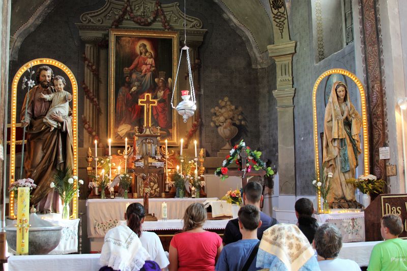Hramul a fost marcat în biserica frumos împodobită printr-o Sf. Liturghie solemnă în prezența credincioșilor din sat, dar și a oaspeților din împrejurimi, precum și de departe. Credincioșii catolici crașoveni vin în pelerinaj în această zi din satele învecinate. Lor li s-au alăturat membrii și conducerea Forumului Democrat German din Reșița. Celebrantul principal a fost pr. Daniel Dumitru, paroh de Oravița, care a concelebrat alături de pr. Ferenc Ebenspanger, preot-pensionar, cel care de ani buni se îngrijește de grija sufletelor din această comunitate-filială. Corul de limbă germană a asigurat cadrul muzical al celebrării euharistice. Pr. Dumitru a predicat în limbile germană și română în cadrul Liturghiei.