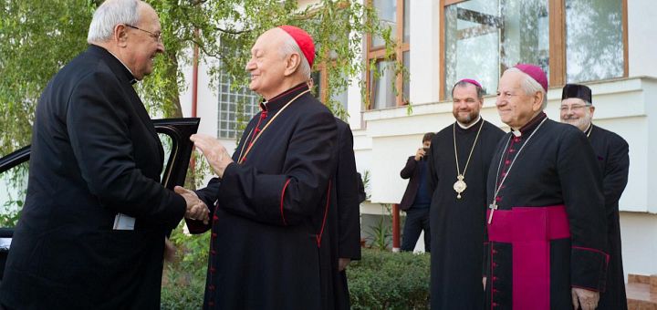 30.09.2017, Blaj (Catholica) - Cardinalul Leonardo Sandri, prefectul Congregației pentru Bisericile Răsăritene, a ajuns în această dimineață la Blaj, centrul spiritual al Bisericii Greco-Catolice din România. În această vizită, Cardinalul Sandri este însoțit de Mons. Maury Buendia, Nunțiu Apostolic în România și Republica Moldova.