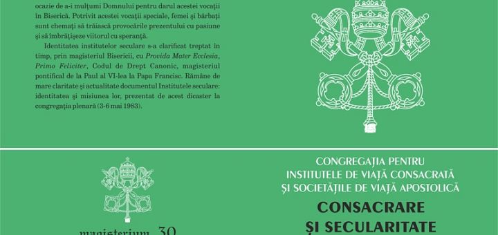 16.10.2017, Iași (Catholica) - La Editura Sapientia din Iași a apărut recent cartea Consacrare și secularitate. Scrisoare către Episcopii din Biserica Catolică despre institutele seculare, scrisă de Congregația pentru Institutele de Viață Consacrată și Societățile de Viață Apostolică și tradusă în limba română de pr. dr. Mihai Pătrașcu. Cartea apare în colecția „Magisterium”, în format 14×20, are 54 de pagini și poate fi procurată de la Librăria Sapientia (www.librariasapientia.ro), precum și de la celelalte librării catolice din țară la prețul de 10 lei.