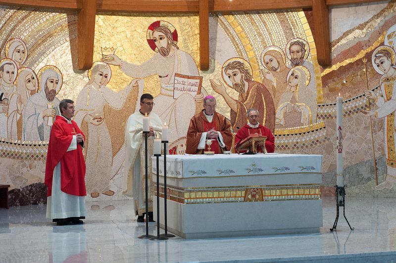 Liturghia din Ajunul Rusaliilor, în frumoasa biserică a carmelitanilor, a fost prezidată de Preasfințitul Cornel Damian, Episcop auxiliar de București, și concelebrată cu preoții Francisc Ungureanu, vicar episcopal, Victor-Emilian Dumitrescu, consilier spiritual general al Comunității Magnificat, și părintele Marian Stoicănescu, paroh al bisericii greco-catolice din Râmnicu-Vâlcea. În predica din acest an aniversar, Preasfințitul Cornel Damian a împărtășit celor prezenți bucuria sa pentru cei 15 ani de prezență a Comunității Magnificat în Arhidieceză. Adorația Euharistică din ajunul Rusaliilor a fost un alt moment central al Întâlnirii Naționale, expresie a spiritualității Comunității Magnificat în centrul căreia se află „Euharistia celebrată, adorată și trăită”. Adunați la propriu în jurul Sfântului Sacrament, membrii comunității și cei prezenți au trăit un moment de intimitate cu Domnul înviat și de comuniune între ei, în care au putut experimenta cu toții frumusețea „comunității una” și bucuria de a se face fiecare slujitorul fraților săi, mici sau mari.