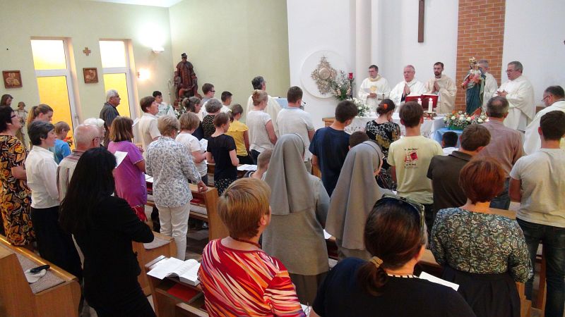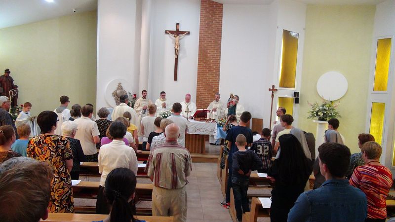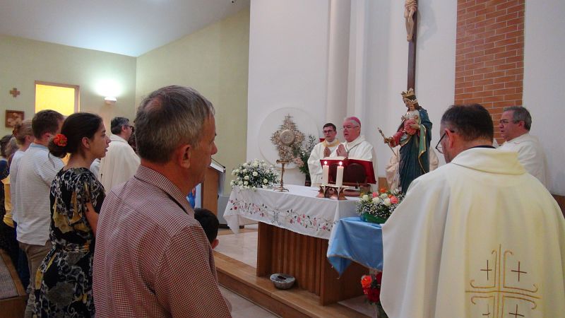 Sfânta Liturghie a început la ora 19.00, fiind prezidată de Preasfințitul Anton Coșa, păstorul Diecezei de Chișinău, care le-a transmis celor prezenți un cuvânt de salut și de îndemn să apeleze mereu la ajutorul Maicii Domnului, mulțumindu-le, totodată, fraților salezieni pentru opera pe care o desfășoară în Dieceză, operă pusă și sub protecția Ajutorului creștinilor. Pr. Janusz Ulatowski, păstorul comunității, i-a salutat și el pe cei prezenți, menționând că 2018 este un an jubiliar nu doar pentru Dieceza de Chișinău, ci și pentru familia saleziană, întrucât acum 150 de ani a fost consacrată biserica „Sfânta Fecioară Maria, Ajutorul creștinilor” din Torino, devenită centrul vieții Sfântului Ioan Bosco.