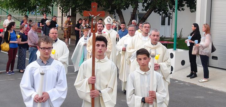 După Împărtășanie a urmat procesiunea cu statuia Fecioarei, Ajutorul creștinilor, cu patru stațiuni, la fiecare dintre ele rugându-ne câte una dintre cele patru părți ale Rugăciunii Jubileului: trei către Preasfânta Treime și una către Maica Bunului Sfat. Sfânta Liturghie s-a încheiat cu binecuvântarea solemnă prin mijlocirea Mariei, Ajutorul creștinilor, împărțită de Preasfințitul Anton Coșa. Sărbătoarea a continuat cu o agapă frățească, moment de împărtășire și bucurie. Sfântă Fecioară Marie, Ajutorul creștinilor, roagă-te pentru noi! (pr. Petru Ciobanu)