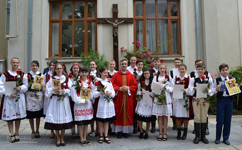 28.05.2018, București (Catholica) - Sâmbătă 26 mai a.c., în parohia „Sfânta Maria a Harurilor” (Bărăția) a fost zi de mare sărbătoare. Îmbrăcați în port național, cu sufletul curat și inima deschisă, emoționați vizibil, dar nerăbdători să primească plinătatea Duhului Sfânt în Sacramentul Mirului, 19 candidați din comunitatea maghiară, au urcat încrezători o nouă treaptă importantă în viața lor creștină.