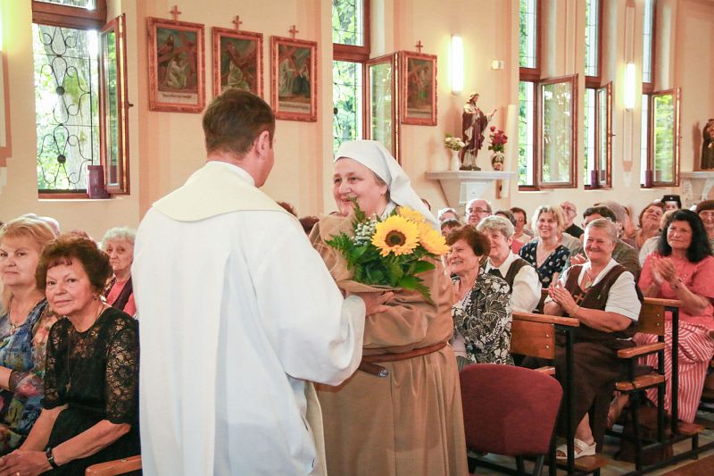 Dacă înainte de Sfântă Liturghie – în care sora și-a reînnoit jurămintele ei călugărești – copiii asistați de surori au sărbătorit-o pe sr. Rosalba cântându-i, la sfârșitul Sfintei Liturghii membri comunității au felicitat-o, i-au mulțumit pentru realizările congregației din Baia Mare și i-au înmânat flori.