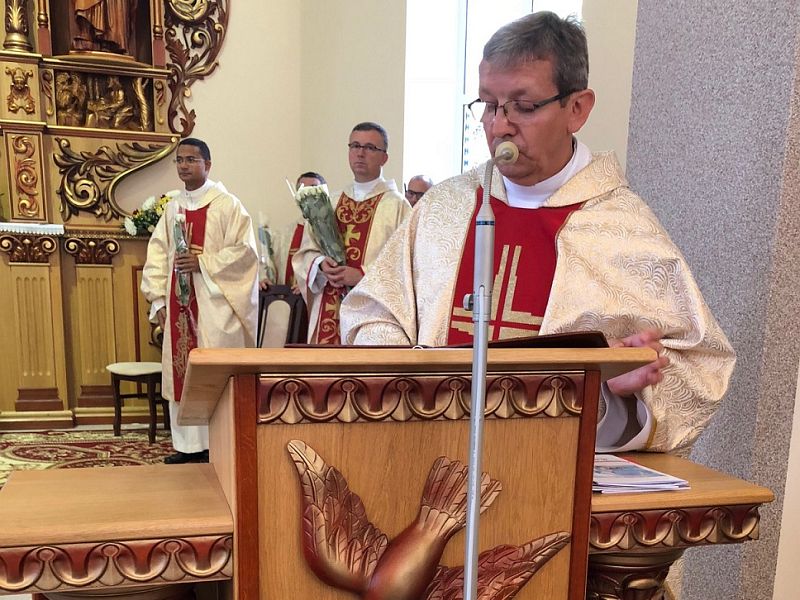 „Mă aflu aici, pentru a vă aduce mulțumiri din numele Sfântului Părinte”, a continuat oaspetele, „și pentru a face posibil ca îmbrățișarea lui, de păstor al Bisericii Universale, să ajungă până la fiecare din voi, cei care astăzi vă confirmați devotamentul față de Dumnezeu și față de Biserică, adunați în jurul acestei mese euharistice.” Și a încheiat: „Să cerem Fecioarei Maria, Maica Bunului Sfat, de la care a primit viață Trupul și Sângele lui Dumnezeu, toată lumina lumii, care întotdeauna ne lumina căile pe pământ. Să cerem Mamei noastre cerești, care era cu Fiul la poalele crucii, prima dintre primii martori, care și acum ne urmărește din Ceruri, să ne ajute să intrăm în taina Euharistiei, pe care vrem să o înnoim pe acest altar, Taina care ne conduce sacramental de la moarte la viață, pentru că să ne putem și noi cândva alătura celor ce trăiesc veșnic în Rai. Așa să fie!”