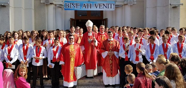 27.09.2018, Iași (Catholica) - Duminică, 23 septembrie 2018, a fost o zi de mare sărbătoare pentru comunitatea din Răducăneni, care, îmbrăcată în sărbătoare, a trăit un eveniment important din viața ei, și anume primirea Sacramentului Sfântului Mir de către 116 copii și tineri, prin impunerea mâinilor Excelenței sale Cornel Damian, Episcop auxiliar de București, care a fost primit cu bucurie de întreaga comunitate.