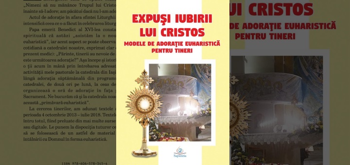 21.10.2018, Iași (Catholica) - La Editura Sapientia din Iași a apărut de curând cartea Expuși iubirii lui Cristos. Modele de adorație euharistică pentru tineri, scrisă sub coordonarea pr. Cristian Bîrnat. Cartea apare în colecția „Rugăciuni creștine”, în formatul 14×20, are 409 pagini și poate fi procurată de la Librăria Sapientia (www.librariasapientia.ro), precum și de la celelalte librării catolice din țara la prețul de 25 lei.