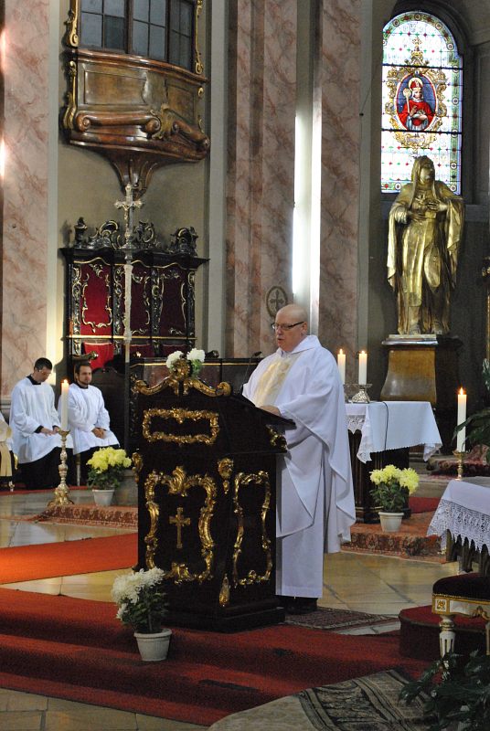 La începutul celebrării Euharistice, Episcopul diecezan i-a salutat pe cei prezenți, aducându-le în prim plan însemnătatea sărbătorii marcate azi, aceea a lui Cristos, cel plin de iubire pentru omenirea întreagă, cinstit ca rege al nostru, al tuturora și al inimilor noastre. Totodată, ziua de azi a coincis și cu sărbătorirea a 75 de ani de viață și 30 de ani de activitate la Dom a organistului prof. univ. dr. Walter Kindl, capelmaestrul Catedralei Romano-Catolice de Timișoara. Evanghelia zilei a fost vestită de părintele Vicar general, care a și rostit predica în toate cele trei limbi utilizate. Alături de considerațiile omiletice la solemnitatea „Cristos Regele Universului”, părintele vicar a adăugat la final, în toate cele trei limbi, și câteva date din viața și activitatea muzical-profesională a domnului capelmaestru al Domului, dr. Walter Kindl.