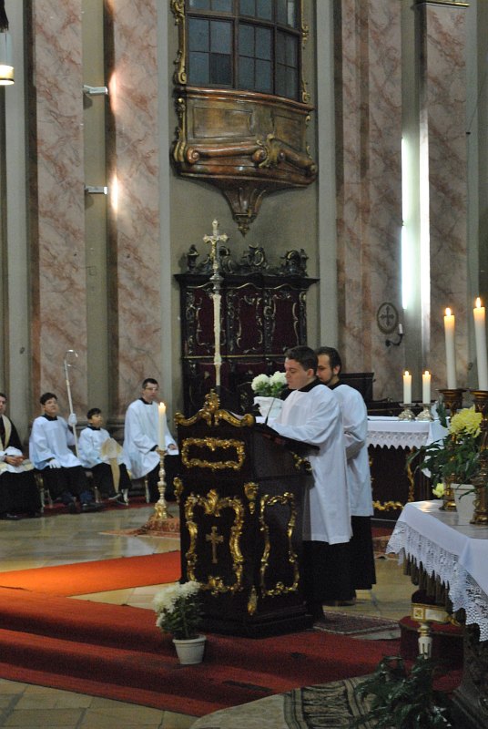 În încheiere, părintele cancelar Nikola Lauš a făcut anunțurile legate de programul Liturgic din Dom, pentru duminica în curs, dar și cea următoare. S-a adus la cunoștința credincioșilor apariția calendarului de perete pentru anul 2019 (care se poate achiziționa de la Dom, din parohii, precum și din Episcopie, la prețul de 4 lei bucata) și a unor cărți pentru copii și tineri. Lucrările de renovare la Dom, despre care s-a discutat deja în mai multe rânduri, vor începe în luna ianuarie 2019, după încheierea Timpului Crăciunului. Cadrul muzical al Sf. Liturghii a fost asigurat de Chorus & Capella Cathedralis, dirijați de dr. Walter Kindl. Au fost interpretate Krönungsmesse (Missa Încoronării) de W.A. Mozart și piese precum Laudate Dominum, Ave Verum Corpus, dar și compoziția Welten singen de Ludwig van Beethoven. (text&foto: Claudiu Călin)
