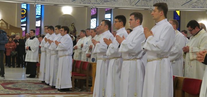 După proclamarea evangheliei, candidații au fost strigați pe nume, răspunzând fiecare „prezent” la chemarea Bisericii, atunci când fiecare candidat s-a auzit strigat pe nume de rectorul Seminarului, care a dat mărturie de faptul că acești candidați au fost aflați vrednici să fie hirotoniți diaconi. Și ei și-au manifestat public dorința de a-l urma cu statornicie și responsabilitate pe Domnul și turma sa, rostind cu fermitate, în fața păstorului Diecezei, a preoților și credincioșilor adunați în Catedrală un sincer și hotărât: „Vreau!” După predică, de trei ori au răspuns aceștia la întrebarea dacă doresc să își asume misiunea de diaconi ai Bisericii.