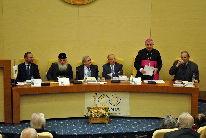 Conform programului, au prezentat comunicări, următorii participanți: Acad. Dan Dubină, Președintele Filialei din Timișoara a Academiei Române – Cuvânt de deschidere; prof. univ. dr. Mircea Martin, membru corespondent al Academiei Române – „Pentru o comunitate a memoriei” Prof. univ. dr. Ion SIMUȚ, Universitatea din Oradea „Banatul literar într-o enciclopedie… bănățeană”; moment artistic susținut de Grupul FLORES, Palatul Copiilor din Timișoara, coordonator prof. Nicolae Pușcașu; Excelența Sa József-Csaba Pál, Episcop Romano-Catolic de Timișoara „Preasfânta Treime, model peren al conviețuirii ieri și astăzi”; ÎPS Ioan Selejan, Mitropolitul Banatului „Manifestări culturale de masă în Banatul istoric la începutul sec. XX”; moderator: conf. univ. dr. Claudiu T. Arieșan, Universitatea de Vest din Timișoara. (Biroul de presă al Diecezei de Timișoara)