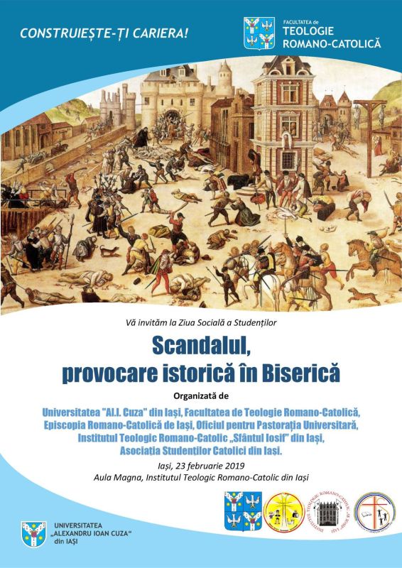 01.02.2019, Iași (Catholica) - Facultatea de Teologie Romano-Catolică din Iași, Episcopia de Iași prin Oficiul pentru Pastorația Universitară, Institutul Teologic Romano-Catolic „Sfântul Iosif” din Iași și Asociația Studenților Catolici din Iași organizează ediția a VII-a a Zilei Sociale pentru Studenți. Evenimentul va avea loc sâmbătă, 23 februarie 2019 și se va desfășura în Aula Magna a Institutului Teologic Romano-Catolic „Sfântul Iosif” din Iași (Str. Th. Văscăuțeanu, nr. 6).