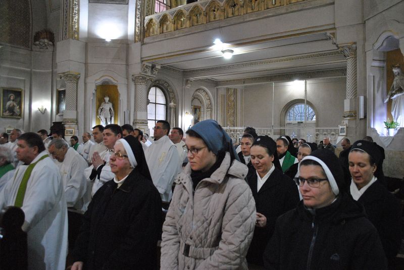 12.02.2019, Timișoara (Catholica) - În 1997 Sfântul Părinte Papa Ioan Paul al II-lea a stabilit Ziua Vieții Consacrate ziua în care sărbătorim sărbătoarea Întâmpinării Domnului (Prezentarea lui Isus la Templul din Ierusalim). În Dieceza de Timișoara există deja o tradiție îndelungată, conform căreia, în sâmbăta cea mai apropiată de sărbătoarea Întâmpinării Domnului, Episcopul diecezan celebrează o Sf. Liturghie comunitară cu confrații preoți, în prezența surorilor și fraților călugări și călugărițe, membri ai vieții consacrate. Această celebrare euharistică, cu un accentuat caracter și de pelerinaj spre inima Diecezei, are loc mereu în Catedrala Sf. Gheorghe, Domul Romano-Catolic din Timișoara, în cadrul ei păstorul și comunitatea clerului rugându-se împreună pentru viețile consacrate din Dieceză, dar și pentru vocații. Deoarece Catedrala episcopală este închisă din cauza lucrărilor de renovare, întâlnirea din acest an a preoților și a reprezentanților diferitelor ordine care activează în Dieceză a avut loc pe 9 februarie în biserica Sf. Cruce a Ordinului Piarist, respectiv în Liceul Teologic Romano-Catolic „Gerhardinum”, găzduit de Complexul Piarist timișorean.