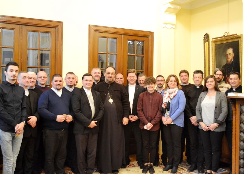 În prima parte a întâlnirii, delegații au fost primiți în audiență la Nunțiatura Apostolică în România de către Excelența Sa Mons. Miguel Maury Buendía. Aici, discuțiile au avut în prim plan raportul pe care tinerii îl au cu Biserica și cu păstorii. Nunțiul Apostolic a subliniat necesitatea de a descoperi împreună noi modalități de lucru în pastorația tineretului și a îndemnat la curaj în fața provocărilor acestor timpuri. Atmosfera a fost prietenoasă iar responsabilii au fost asigurați de susținerea reprezentantului Sfântului Scaun în România. A urmat vizita la PS Mihai Frățilă, Episcop greco-catolic de București. Acesta a vorbit în special despre vizita Papei Francisc în România.