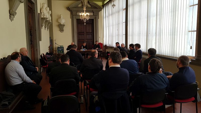 18.03.2019, Florența (Catholica) - Sâmbătă, 16 martie 2019, a avut loc, într-o frumoasă sală a palatului arhiepiscopal din Florența, cea de a doua parte a întâlnirii naționale a preoților români greco-catolici din Italia, convocată de către directorul general al Fundației „Migrantes”, don Giovanni De Robertis, cu sprijinul pr. Cristian Crișan, Vizitator apostolic al Bisericii Române Unite pentru Europa și Coordonator Național – cu numire de la Conferința Episcopală Italiană, CEI – pentru Italia. În scopul bunei reușite a întâlnirii, au răspuns convocării mai mulți preoți din diferite zone ale Italiei.