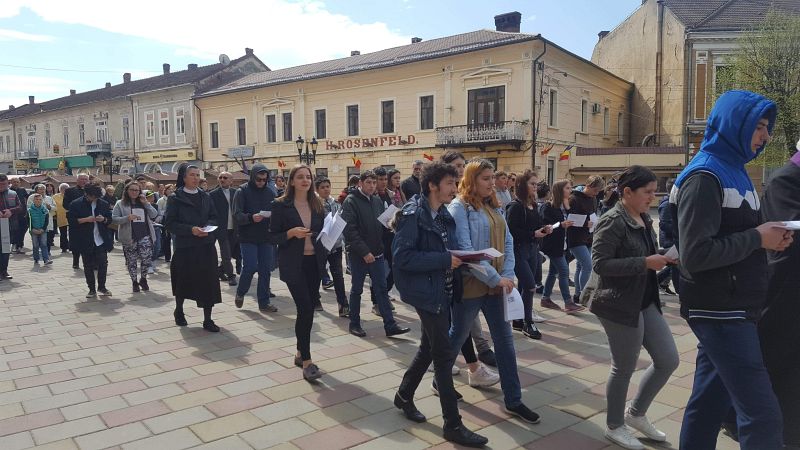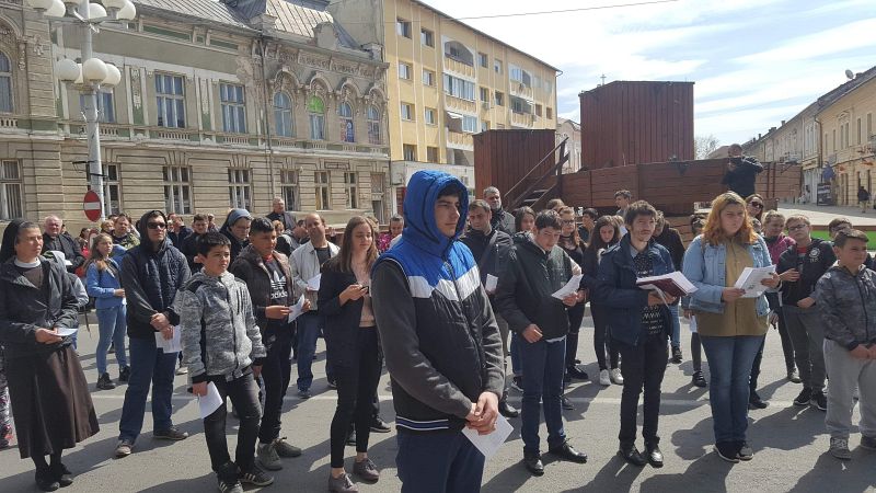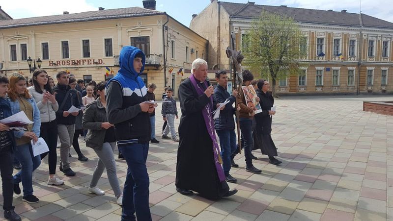 De la ora 12.00 participanții au luat parte și meditat împreună Calea Sf. Cruci, în centrul orașului, între biserica parohială și Crucea cea mare a comunității romano-catolice din Parcul Drăgălina (fost Franz Josef), la care are loc, de regulă și procesiunea din noaptea Învierii. De la ora 16.00 participanții au participat împreună la Sf. Liturghie, celebrată în Biserica Parohială.