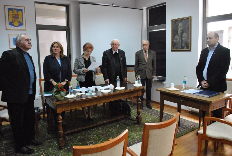 Din comisia pentru susținerea publică a tezei de doctorat au făcut parte: prof. univ. CSI dr. Susana Andea – președinte, director-adjunct al Institutului „George Barițiu”, CSI dr. Stelian Mândruț, conducător de doctorat, prof. univ. dr. Marton Iosif, Universitatea „Babeș-Bolyai” – Facultatea de Teologie Romano-Catolică și prepozit major al capitlului Catedralei „Sfântul Mihail” din Alba Iulia, prof. univ. dr. Marcela Sălăgean, Universitatea „Babeș-Bolyai”, Facultatea de Istorie și Filosofie, din Cluj-Napoca și CSI dr. Vasile Ciobanu, Institutul de Studii Socio-Umane Sibiu al Academiei Române. De asemenea, au asistat la susținere, prea cucernicii pr. Florin Buhalea, capelan militar pentru pastorația romano-catolicilor din Armata Română, pr. Mircea Remus Birtz, cercetător științific în cadrul Institutului de Istorie „George Barițiu” al Academiei Române din Cluj-Napoca, Vass Csongor, arhivist în cadrul Arhiepiscopiei de Alba Iulia, dr. Claudiu Călin, arhivist al Episcopiei Romano-Catolice de Timișoara.