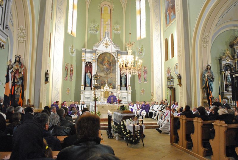 Requiem-ul pentru sufletul pr. Groza a fost celebrat miercuri, 15 mai 2019, la ora 17.00 în biserica din Cenad, de către E.S. Iosif Csaba Pál, Episcop de Timișoara, în concelebrare cu E.S. Martin Roos, Episcop emerit, predica fiind rostită de pr. Mihail Titi Dumitresc, paroh de Lugoj. După aceasta a urmat celebrarea înmormântării, în cimitirul parohial din Cenad. În biserica parohială din Chișineu Criș au fost celebrate două Requiem-uri pentru sufletul defunctului, în 14 și în 16 mai 2019. (text: Claudiu Călin; foto: Algren Ehrenberger)