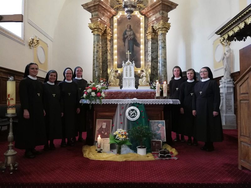 21.06.2019, Timișoara (Catholica) - Duminică, 16 iunie 2019, în cadrul Sfintei Liturghii celebrate în biserica parohială Imaculata Concepțiune din Caransebeș, vechi lăcaș al călugărilor franciscani, încă din secolul al XVIII-lea, cu prezențe ale acestui ordin, pe aceste meleaguri, încă din timpul vieții Sf. Francisc, Surorile Franciscane din localitate au sărbătorit jubileul a 25 de ani de activitate la Caransebeș, dar și în alte puncte din Dieceza de Timișoara. Celebrantul Sfintei Liturghii și gazda momentului a fost pr. Marin Matieș, parohul locului.