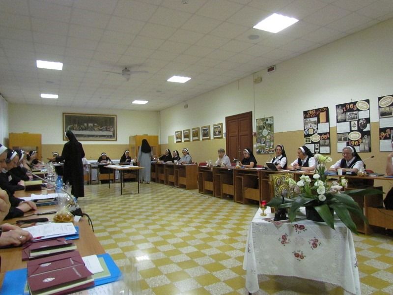 Ieri, 17 iulie 2019, surorile capitulare și-au ales o nouă Superioară Generală a Ordinului, pentru următorii șase ani, în persoana Maicii Marcela – Emilia Runcan, din Provincia „Inima Neprihănită a Sfintei Fecioare Maria” din România. Noua Superioară Generală a participat la capitlul general în calitate de superioară provincială, are 49 de ani și deține o bogată activitate apostolică, în cadrul provinciei și a bisericii noastre. La alegeri a fost prezent Episcopul Gregorgio Dimitri Gallaro, Eparh al Eparhiei italo-albaneze din Sicilia, care a și celebrat Sfânta Liturghie pentru surorile capitulare în dimineața acestei zile. Maica Marcela, după ce a fost aleasă superioară generală, a mulțumit lui Dumnezeu pentru îndrumarea Lui și prezența tangibilă a Spiritului Sfânt, după care a condus lucrările capitlului.
