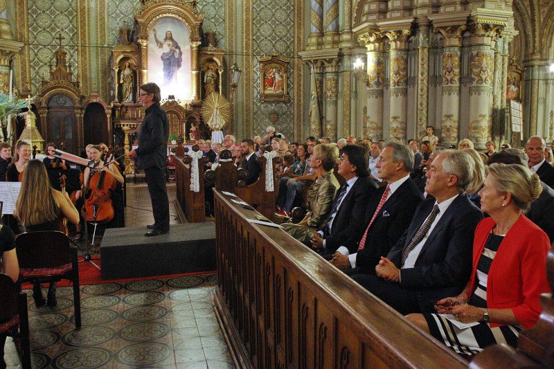 Atât doamna secretar de stat, cât și Alteța Sa Regală au onorat manifestarea prin prezența lor, doamna Gurr-Hirsch adresând chiar câteva cuvinte muzicienilor și publicului prezent. Părintele canonic onorific János Kapor, parohul monumentalei biserici Millennium, dedicată Sfintei Fecioare Maria, asistat de dl. prof. univ. dr. Walter Kindl, moderatorul evenimentului, a urat bun-venit în acest lăcaș-emblemă a Timișoarei, atât orchestrei, cât și oficialităților și publicului ascultător.
