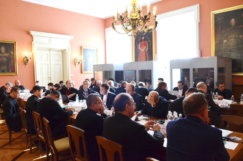 Marți, 5 noiembrie, Sfânta Liturghie de deschidere a fost prezidată de ÎPS Marek Jędraszewski, Arhiepiscop de Cracovia, în capela palatului episcopal. Sesiunile de lucru, desfășurate la sediul Arhiepiscopiei de Cracovia, au fost deschise de salutul Eminenței Sale Cardinalul Angelo Bagnasco, Arhiepiscop de Genova și președintele CCEE (Consiliul Conferințelor Episcopale Europene). A urmat salutul ÎPS Marek Jędraszewski, responsabil al Secțiunii pentru universitate și școală din cadrul CCEE. Eminența Sa Card. Jean-Claude Hollerich, Arhiepiscop de Luxemburg și președinte al Comisiei pentru tineri din cadrul CCEE, s-a adresat participanților stimulând reflecția asupra modului în care pot fi animați tinerii din Europa.