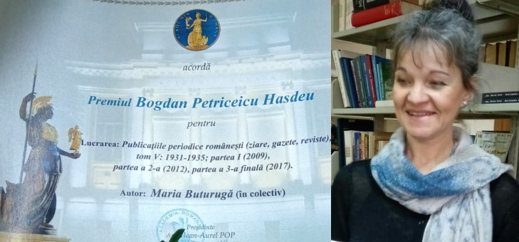 Lista laureaților premiului „Bogdan Petriceicu-Hașdeu” al Academiei Române se completează anul acesta cu un licențiat în teologie catolică, Maria Buturugă, catolică aparținând Arhidiecezei de București, pentru lucrarea „Publicațiile periodice românești (ziare, gazete, reviste)”, ajunsă la partea a 3-a a celui de al V-lea tom, vizând anii 1931-1935 ai publicisticii românești. Lucrarea include desigur și descrierile publicațiilor catolice ale vremii. Premiul a fost conferit de către președintele Secției de Filologie și Literatură a Academiei Române, academician Eugen Simion, fiind rodul muncii unui colectiv de bibliografi ai Bibliotecii Academiei Române, alcătuit din: Cornelia Luminița Radu, Maria Buturugă și Elena Ioana Milea. Printre personalitățiile marcante prezente la eveniment s-a numărat și Excelența Sa, Ioan Robu, membru de onoare al Academiei Române și Administrator Apostolic al Arhidiecezei de București.