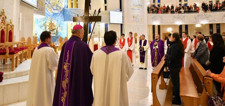 26.02.2020, Iași (Catholica) - Miercurea Cenușii marchează în Biserica Romano-Catolică începutul Postului Mare. PS Iosif Păuleț, Episcopul Diecezei de Iași, s-a rugat împreună cu credincioșii adunați în Catedrala „Sfânta Fecioară Maria, Regină” din Iași Calea Sfintei Cruci și a prezidat Sfânta Liturghie în cadrul căreia a avut loc ritul impunerii cenușii. A fost prezent la celebrare PS Petru Gherghel, Episcop emerit, preoți care slujesc la Episcopie și numeroși credincioși.