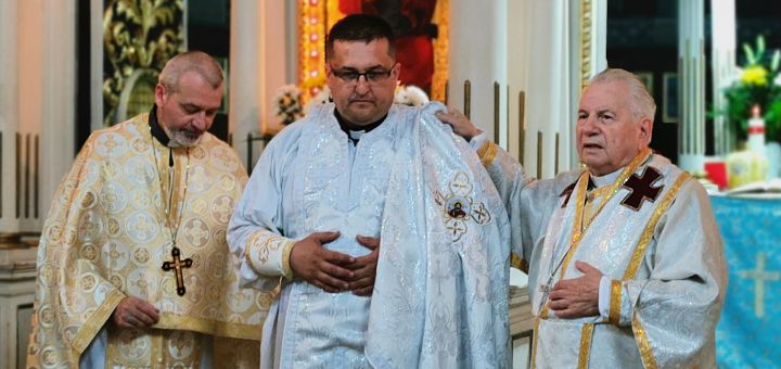 Noul hirotonit este originar din Cluj-Napoca, este născut la 3 iulie 1974. A absolvit în anul 1999, facultatea de Medicină Generală din cadrul universității de Medicină și Farmacie Timișoara. În anul 2013 a obținut titlul de medic specialist în specialitatea „Medicina familiei”. În anul 2016 s-a înscris la facultatea de teologie Greco-Catolică din cadrul Universității „Babeș-Bolyai”, departamentul Blaj, pe care a absolvit-o în acest an. Este căsătorit, are patru copii și locuiește împreună cu familia în Timișoara. La Sfânta Liturghie alături de Preasfințitul Alexandru Mesian au concelebrat: Mons. Angelo-Narcis Pop, Vicar general, pr. Teodor Baba, protopop de Lugoj, pr. consilier eparhial Nicolae Teodorescu, protopop de Timișoara, pr. prot. on. Ioan Pop, parohul Catedralei și pr. Vasile Borda, paroh Timișoara I „Nașterea Maicii Domnului”. Răspunsurile liturgice au fost date cu multă măiestrie de corul „Reînvierea” al Catedralei.