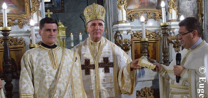 15.09.2020, Oradea (Catholica) - Preasfinția Sa Virgil, Episcopul greco-catolic de Oradea, a hirotonit astăzi, 15 septembrie 2020, în cadrul Sfintei și Dumnezeieștii Liturghii pe tânărul Vasile Simion Terec în treapta diaconatului. La Masa Sfântului Altar au concelebrat părintele Eduard Roman, administratorul Seminarului și părintele Eduard Fischer, parohul bisericii Sfântul Gheorghe, biserica Seminarului.
