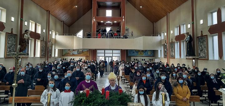 30.11.2020, Roman (Catholica) - Duminică, 29 noiembrie 2020, Preasfințitul Iosif Păuleț a fost prezent în Parohia „Fericitul Ieremia” din Roman. Vizita a fost un moment de mare sărbătoare în această primă duminică din anul liturgic și din Advent. Parohia „Fericitul Ieremia” din Roman a trăit o triplă bucurie: primirea în mijlocul ei a Preasfințitului Iosif Păuleț, prima duminică din Advent și sfințirea coroanei de brad, și în al treilea rând bucuria de a primi mesajul de speranță, transmis de Sfinția Sa și în scrisoarea pastorală „Împreună pe calea speranței”.