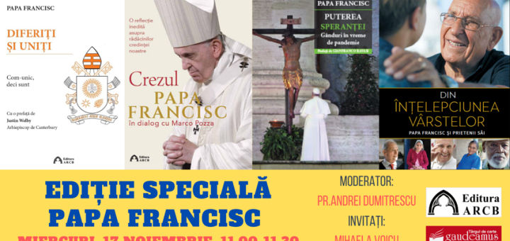 În 2021, Editura ARCB a publicat peste 25 de titluri, dintre care cele mai multe vor fi prezentate în cadrul a patru sesiuni de lansare de carte, conform programului alăturat. Pe toată durata târgului, Editura ARCB în parteneriat cu Librăria Sf. Iosif acordă un discount de 20% la toate titlurile editurii. Online vor avea loc patru momente de prezentare. Primul este intitulat „Ediție specială Papa Francisc”, fiind programat pentru miercuri, 17 noiembrie, între 11:00 și 11:30, invitați fiind Mihaela Voicu și Liana Gehl, iar moderator pr. Andrei Dumitrescu. Cărțile ce vor fi prezentare sunt: Papa Francisc, „Diferiți și uniți. Com-unic, deci sunt”; Papa Francisc în dialog cu Marco Pozza, „Crezul. O reflecție inedită asupra rădăcinilor credinței noastre”; Papa Francisc, „Puterea speranței. Gânduri în vreme de pandemie”; respectiv Papa Francisc și prietenii săi, „Din înțelepciunea vârstelor”.