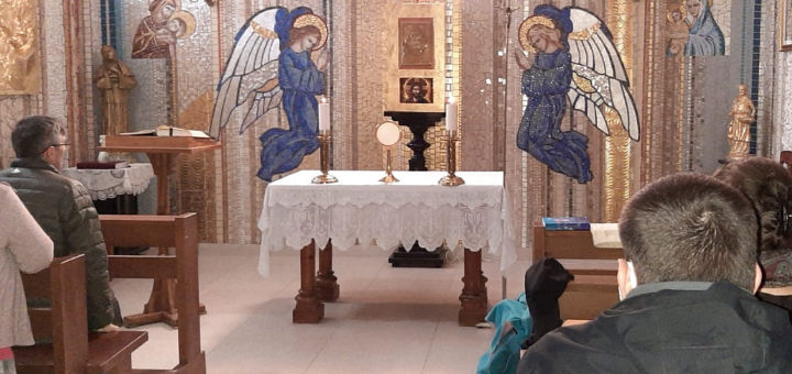 16.11.2021, București (Catholica) - Sâmbătă, 13 noiembrie 2021, un grup de credincioși din mai multe parohii din București care fac Adorație euharistică s-au reunit pentru o Zi Comunitară în parohia Sf. Francisc de Assisi din București (Crângași). După rugăciunea inițială de laudă, cuvântul de învățătură a fost ținut de pr. paroh Iosif Tiba. În cuvântul său, părintele a subliniat: „De multe ori nu ne dăm seama de această Prezență. Biserica, prin însăși structura ei, ar trebui să vorbească, să capteze privirile și inimile credincioșilor de cum intră, prin simbolismul și frumusețea ei, punându-i față în față cu Cel Prezent în Preasfântul Sacrament. Arta sacră nu e un capriciu, ci un martor privilegiat”. Cu toții am remarcat bogăția mozaicurilor care împodobesc biserica și capela care a găzduit întâlnirea adoratorilor, reprezentând îngeri și sfinți în jurul Euharistiei.