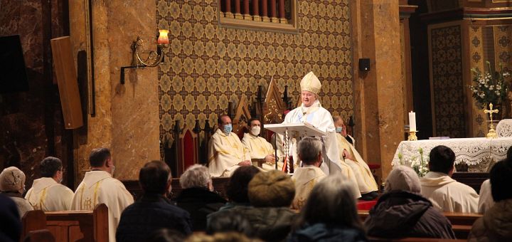 09.12.2021, București (Catholica) - Miercuri, 8 decembrie 2021, în Solemnitatea Neprihănitei Zămisliri a Preasfintei Fecioare Maria, patroana Arhidiecezei de București, ÎPS Aurel Percă, Arhiepiscop Mitropolit de București, a prezidat Sfânta Liturghie solemnă în Catedrala Sf. Iosif. Au concelebrat PS Cornel Damian, Episcop Auxiliar de București, PS Mihai Frățilă, Episcop greco-catolic de București, Mons. Mario Codamo, Consilierul Nunțiaturii Apostolice, preoții Catedralei și alți preoți din Arhidieceză.