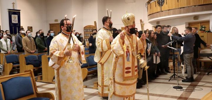 17.01.2022, Cluj (Catholica) - Sfânta Liturghie arhierească celebrată de Preasfințitul Claudiu, Episcopul de Cluj-Gherla, a reunit numeroși studenți, duminică, 17 ianuarie 2022, în capela „Sf. Iosif” a Catedralei Martirilor și Mărturisitorilor sec. al XX-lea din Piața Cipariu, Cluj-Napoca. Mai mulți preoți implicați în pastorația tineretului s-au aflat la masa Sf. Altar, precum și preoți care slujesc în capela „Sf. Iosif”. Au diaconat, rugându-se în mai multe limbi, dc. Marius Cîmpean și dc. Ovidiu Marișca. Tânărul preot Vlad Pupăză s-a aflat la dispoziția studenților care au dorit să se spovedească. A fost cea de-a doua Sfântă Liturghie pentru studenți, de la înființarea, în decembrie 2021, a Misiunii pentru studenți LUX MUNDI în cadrul Eparhiei de Cluj-Gherla. Corul tânăr care a fost prezent la prima celebrare a oferit și de această dată răspunsurile liturgice, cu acompaniament la mai multe instrumente.