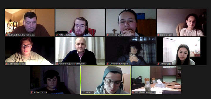 05.02.2022, Timișoara (Catholica) - Conform planului redactat de către Centrul Diecezan de Tineret, în perioada 4-6 februarie a.c. ar fi trebuit să aibă loc un curs de animatori la Casa Marienheim. Deoarece situația pandemică nu permite organizarea evenimentelor cu mulți participanți, cursul a fost organizat în data de 4 februarie a.c. online, pe platforma Zoom, între orele 16.30-17.30 în limba maghiară, iar între orele 18.00-19.00 în limba română. Receptarea cursului de către tinerii interesați din Dieceză, spre surprinderea organizatorilor, a fost una foarte bună. Tema întâlnirii a fost Sfânta Scriptură sau Biblia, deoarece Dieceza de Timișoara se află în anul pastoral al Sfintei Scripturi.