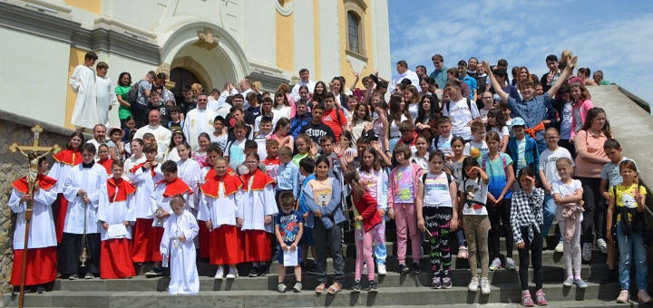 07.06.2022, Timișoara (Catholica) - În Dieceza de Timișoara, de două decenii a devenit o tradiție organizarea în luna iunie a unui pelerinaj al ministranților (slujitorilor la altar) la bazilica Maria Radna. În ultimii doi ani, situația pandemică nu a permis organizarea unor întruniri cu număr mare de participanți, astfel că întâlnirea s-a desfășurat parțial online. În acest an, însă, băncile bazilicii din Maria Radna s-au umplut din nou cu copii, iar bucuria și entuziasmul lor au fost împărtășite tuturor celor care au participat împreună cu ei la Sfânta Liturghie celebrată la ora 11 de către pr. Alin Irimiciuc, paroh de Bocșa, responsabil pentru pastorația ministranților. La Sfânta Liturghie au concelebrat toți preoții diecezani care i-au însoțit pe copii.