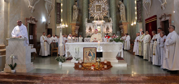 02.10.2022, Maria Radna (Catholica) - După doi ani de restricții cauzate de pandemie, în data de 1 octombrie a.c. în Bazilica Maria Radna s-a putut organiza din nou întâlnirea preoților, a persoanelor consacrate și a colaboratorilor laici din Dieceza de Timișoara, cu prezență fizică. În ultimii doi ani întâlnirea a avut loc în mediul online, pe platforma Zoom.