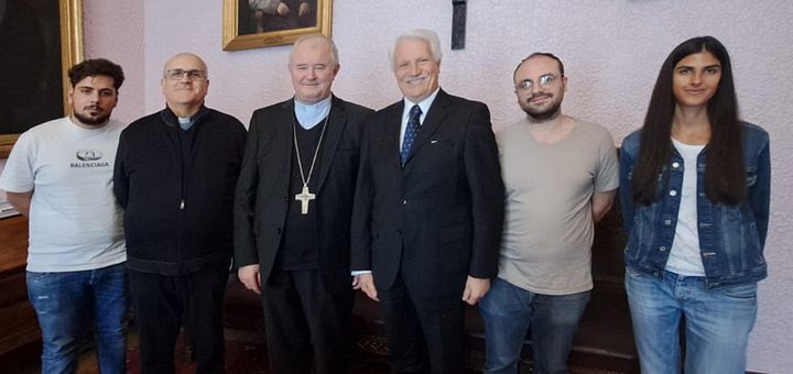 06.10.2022, București (Catholica) - În data de 4 octombrie 2022, ÎPS Aurel Percă, Arhiepiscop Mitropolit de București, i-a primit în audiență pe Antonio di Matteo, președintele Mișcării Creștine a Lucrătorilor – MCL (Movimento Cristiano Lavoratori) din Italia, împreună cu Mons. Cesare Lodeserto, Vicar general al Diecezei Romano-Catolice de Chișinău, și cei trei voluntari italieni pentru București și Chișinău.