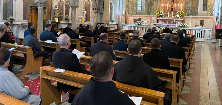 ÎPS Aurel Percă și ÎPS Ioan Robu la ora de rugăciune a preoților din capitală de la biserica italiană