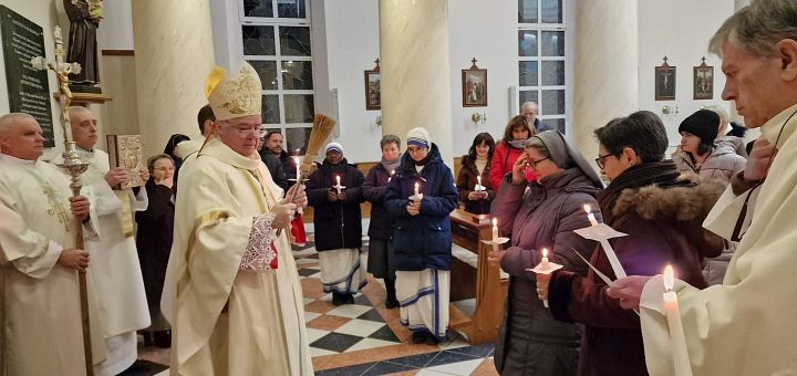 La începutul Sfintei Liturghii, după procesiunea formată din Episcopi, preoți, diaconi, călugări și călugărițe, Preasfințitul Anton a binecuvântat lumânările, care apoi au fost aprinse ca semn al prezenței în mijlocul nostru a lui Isus, lumina lumii. Cuvântul de învățătură a fost rostit de pr. Giuseppe Pellizzari SDB, care a spus că, pentru Biserică, viața consacrată este asemenea unei lumânări care, pentru a lumina, are nevoie de harul lui Dumnezeu, și care, arzând, aprinde o altă lumânare, răspândind în jur lumina credinței. După predică, persoanele consacrate, ținând în mâini lumânările aprinse, și-au reînnoit voturile călugărești, manifestându-și astfel fidelitatea față de vocația primită.
