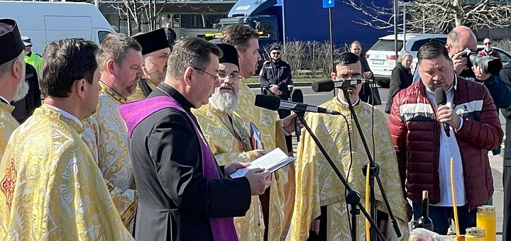Rugăciune la monumentul „Aripi” din București
