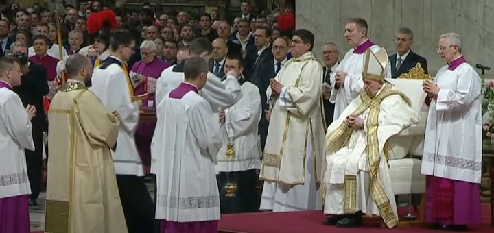 08.04.2023, Vatican (Catholica) - La Vigilia Pascală de la Vatican, Papa Francisc i-a îndemnat pe oameni „să rostogolească pietrele păcatului și ale fricii” pentru a experimenta puterea învierii lui Cristos. În omilia sa pascală din 8 aprilie, Sfântul Părinte a lansat o invitație de a „redescoperi harul învierii lui Dumnezeu din voi!” „Astăzi, frați și surori, puterea Paștelui vă cheamă să rostogoliți orice piatră a dezamăgirii și a neîncrederii. Domnul este expert în a rostogoli pietrele păcatului și ale fricii… întoarceți-vă la El”, a spus Pontiful în Bazilica San Pietro. „Priviți cu încredere spre viitor”, a spus el. „Pentru că Cristos a înviat și a schimbat direcția istoriei.” Vigilia pascală, care are loc în noaptea Sâmbetei Sfinte, „este cea mai mare și mai nobilă dintre toate solemnitățile”, potrivit Misalului Roman.