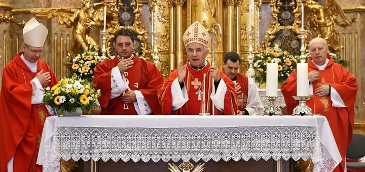 24.04.2023, Timișoara (Catholica) - După ce sâmbătă, 22 aprilie 2023, în cadrul unei Sfinte Liturghii solemne pontificale, E.S. Miguel Maury Buendía, Nunțiu apostolic în România și Republica Moldova, a binecuvântat Catedrala Diecezei de Timișoara, Domul Sf. Gheorghe, duminică, 23 aprilie, întreaga Dieceză romano-catolică a sărbătorit hramul întâii ei biserici, sfințite în cinstea Sf. Gheorghe martir. Sfânta Liturghie pontificală a fost celebrată de către E.S. Iosif Csaba Pál, Episcop diecezan, în concelebrare cu E.S. Stefan Zekorn, Episcop auxiliar de Münster; Mons. Johann Dirschl, Vicar general; pr. Nikola Lauš, director al Cancelariei Episcopale.